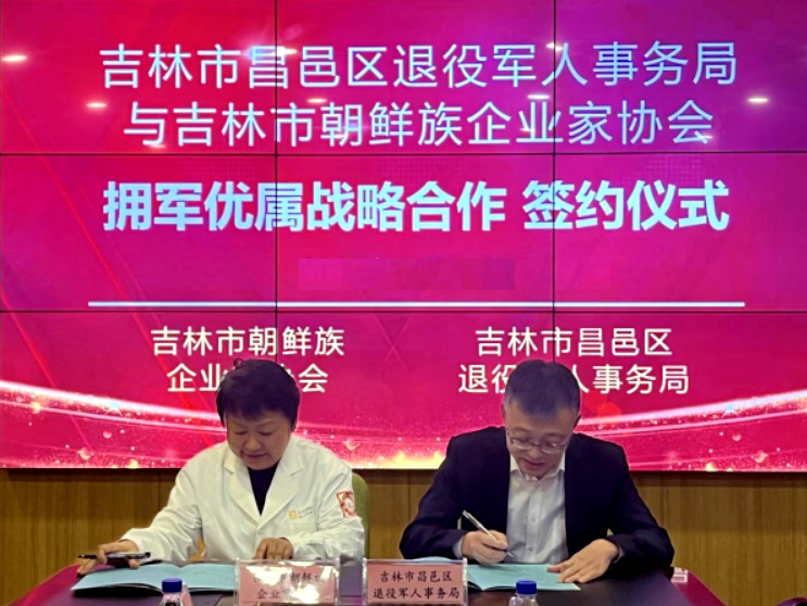 近日,吉林市昌邑區退役軍人事務局與吉林市朝鮮族企業家協會、吉林市正大心血管病醫院簽署《擁軍優屬合作協議》,這標志著吉林市昌邑區雙擁共建工作再次邁上新臺階。