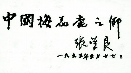 1992年,愛新覺羅 溥杰緬懷當年鹿苑,奮筆書寫了“神州鹿苑”四個大字題贈東豐,寄托了他對東豐鹿業發展的殷切希望。1995年,身居海外的張學良將軍,追思當年跟隨父帥戎馬關東、與鹿苑結下不解之緣的歷歷往事,親筆題詞“中國梅花鹿之鄉”,墨寶贈給家鄉父老,并附一張親筆簽名的近照托人帶回東豐,表達了少帥對祖國、對故鄉的深深眷戀和美好祝愿。
