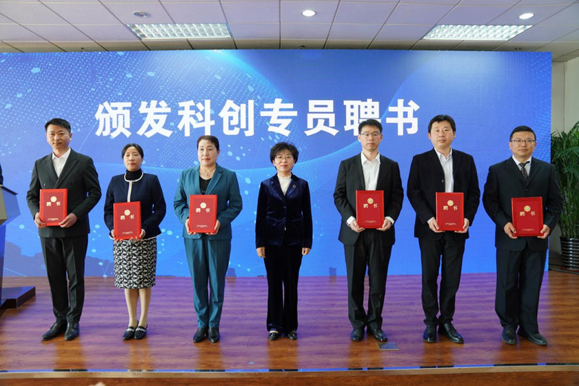 長春市南關區人民政府領導為長春大學科研人員頒發“科創專員”聘書。
