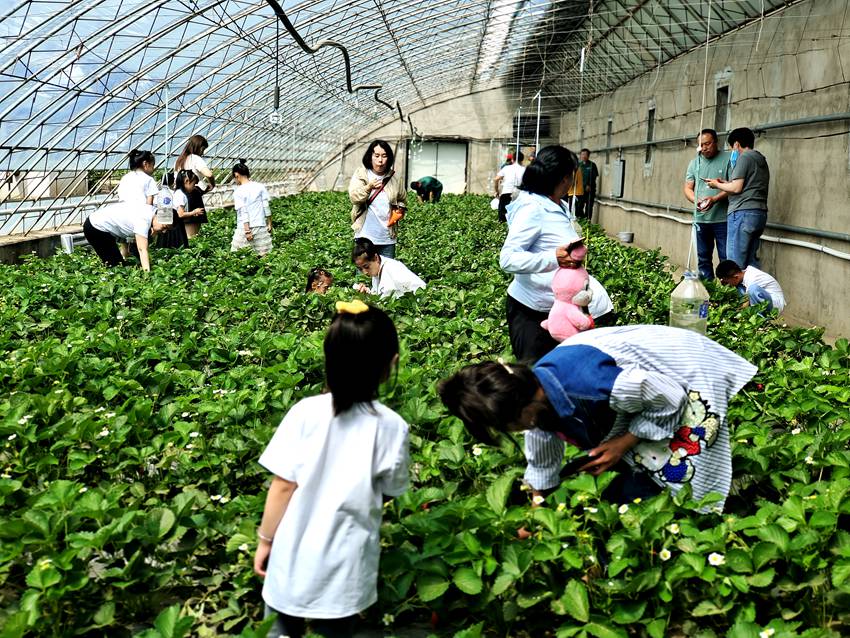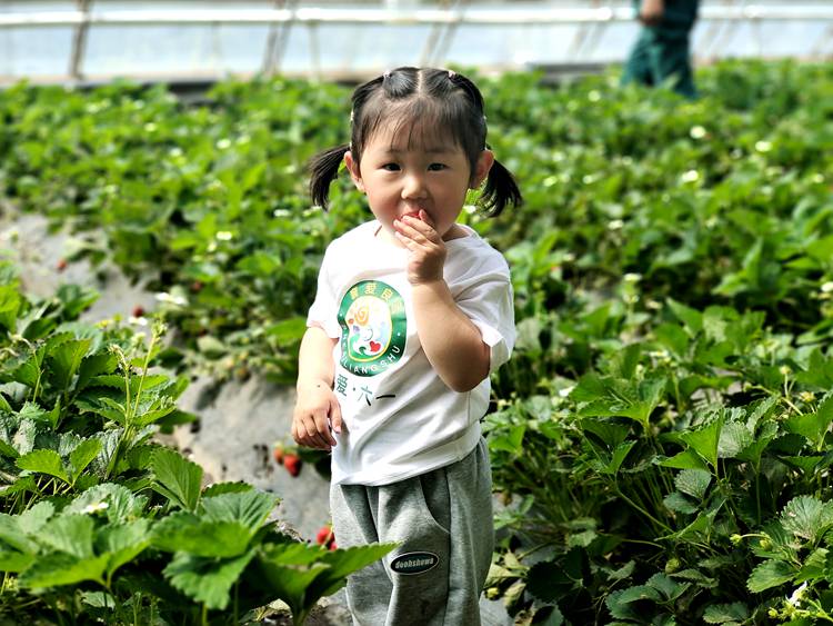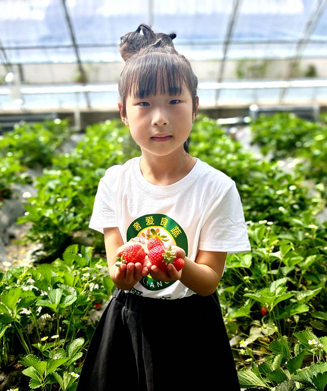 草莓可以說是奢愛良蔬的“明星”農產品,在這里過節的孩子們怎么能不去品嘗一下?!皨寢?,草莓好甜,太好吃了?!焙⒆觽儼延H手摘下的草莓放到嘴里的時候,開心的笑容洋溢在稚嫩的臉上,這也讓他們更懂得了收獲的喜悅。家長們則拿起手機記錄下一瞬間的美好。