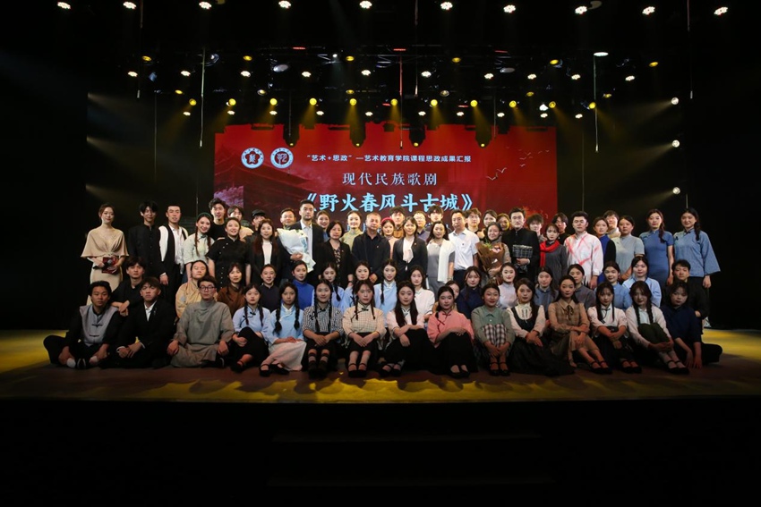 傳承紅色基因,鑄就紅色信仰。為推進課程思政建設,落實立德樹人根本任務,在吉林藝術學院黨委的堅強領導下,藝術教育學院用“藝術+思政”賡續紅色血脈,以歌劇的表現形式將思政課堂拓展到舞臺,將現代民族歌劇《野火春風斗古城》經典片段匯報演出活化成紅色教材,生動再現中國人民堅強不屈、同仇敵愾、不怕犧牲、敢于勝利的偉大民族精神,引導廣大師生傳承紅色精神,推動中國特色社會主義思想主題教育走深走實,入腦入心。