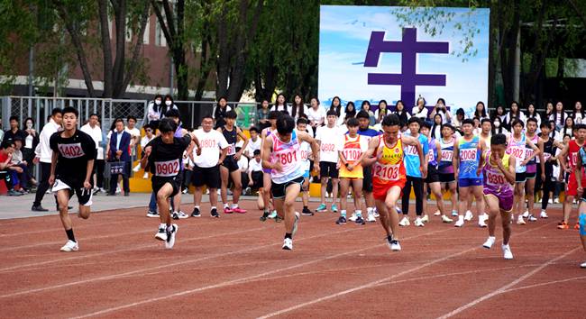 伴隨著發令槍響,男子100米比賽開始……運動會各競技項目全面展開,運動員們在綠茵上、跑道上宣示青春激情,以汗水秀出新風采。場外同學們通過舞蹈、特色展示為運動員們加油喝彩。