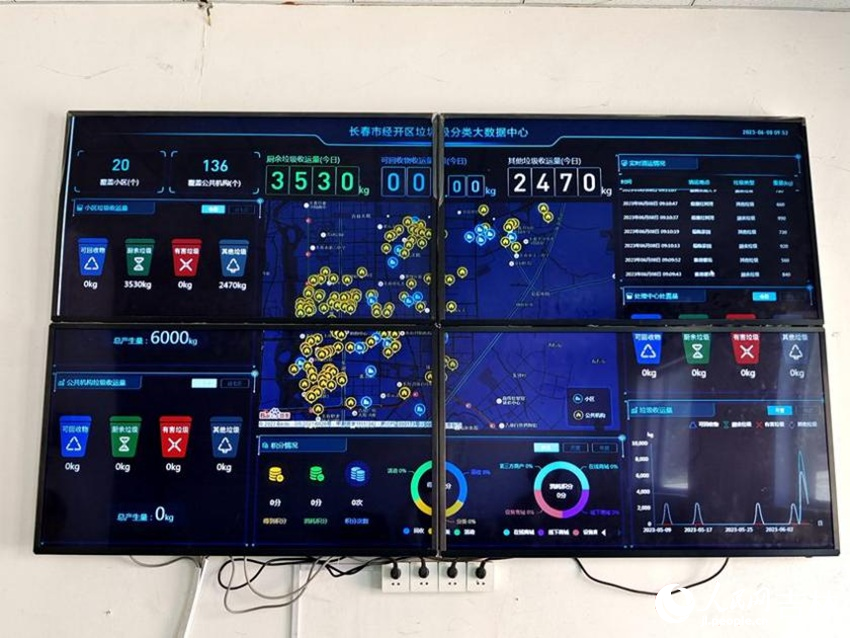此外,在長春經開廚余垃圾末端處置中心內,還設置了一處“垃圾分類互聯網+駕駛艙”操作室,大數據中心顯示器上實時顯示著廚余垃圾收運量數據,數據每隔30分鐘刷新一次。根據監測數據,可以合理安排清運車趕往小區清收廚余垃圾。如果有小區的廚余垃圾突然增多,也可以及時協調車輛抵達運輸。通過數字化管理,可以有效進行調配。