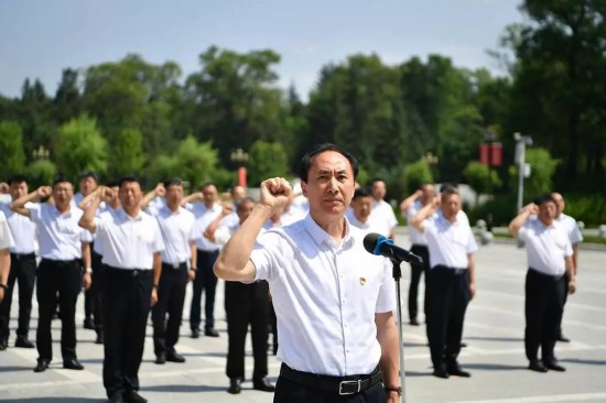 吉林省退役軍人事務廳廣大黨員在宣誓廣場重溫入黨誓詞。