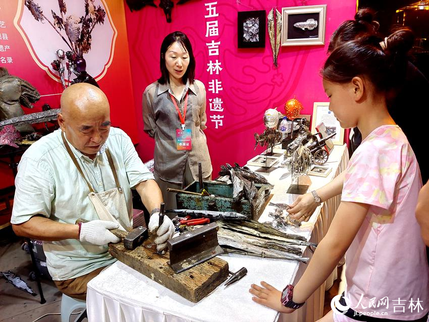 在臺下,關東面塑、安圖隋氏鐵制品、韓氏草編、烏拉滿族鳳吉園賈家鍋子制作技藝、李連貴熏肉大餅、糖畫、金氏過水手搟面、朝鮮族泡菜制作技藝等50個非遺項目與商品展區也受到熱捧,吸引了大批市民駐足觀賞、品嘗和購買。據了解,本屆吉林非遺節為期5天,展出500余種非遺產品,部分特色非遺項目還將入駐電商平臺進行展售。