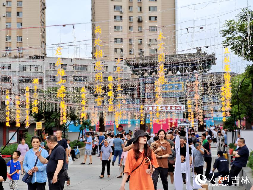 現場,“我在精彩夜吉林等你”“曲徑通幽處”“我見青山多嫵媚,料青山見我應如是……”等網紅路牌與百余首詩詞組成的景觀燈光秀,吸引市民紛紛打卡拍照、合影留念。