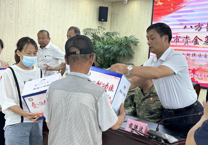 “感謝黨和政府對我們老兵的關懷,感謝全社會對我們的關愛……”7月25日,在和龍市“八方聚友愛、一起向未來”募捐活動,和龍市退役老兵代表尹世寬接過由州關愛退役軍人和軍屬烈屬基金會捐贈的愛心藥品,言語里滿是感激。