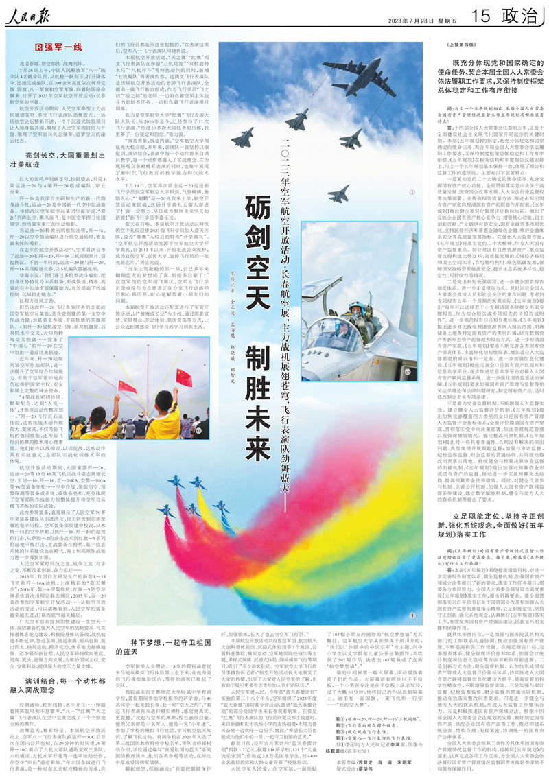 2013年,我國自主研發生產的新型L—15飛機和殲—10A戰機,上演精彩的“藍天舞步”;2016年,轟—6甲轟炸機、紅旗—9防空導彈系統首次出現在靜態展區;2017年,運—20首次參加空軍航空開放活動……從航空開放活動的變遷,可以清晰看到,人民空軍的裝備越來越先進,打贏的底氣越來越足。