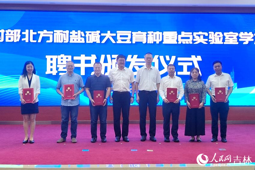 論壇現場為“農業農村部北方耐鹽堿大豆重點育種實驗室”和“長發農業國家博士后科研工作站”舉行揭牌活動、為“農業農村部北方耐鹽堿大豆育種重點實驗室學術委員會委員”頒發了聘書。