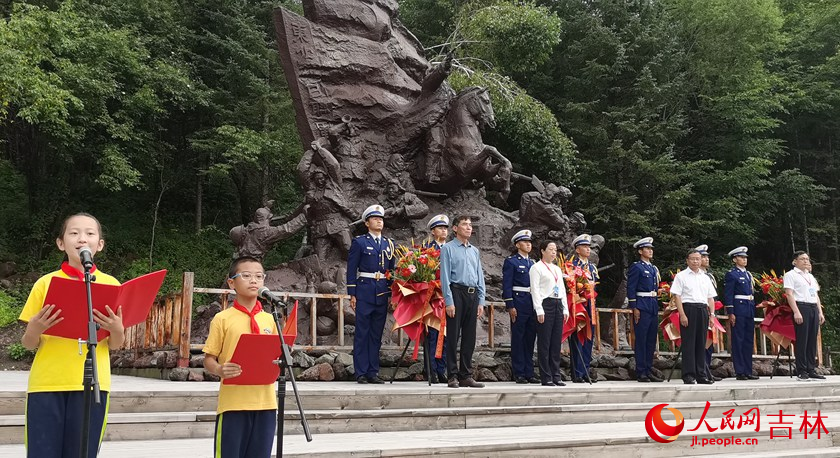 吉林省森林消防總隊政治部主任趙西州出席活動,并與池南區二級調研員李校一同為吉林省森林消防總隊“黨性教育基地暨思想政治教育實踐基地”揭牌。吉林省東北抗聯研究會會長程舒偉,“九一八”歷史博物館研究部主任高健,東北烈士紀念館研究部主任贠占軍,楊靖宇將軍后人代表馬繼志向東北抗聯二軍雕塑敬獻花籃,長白山池南區少先隊員致頌詞。