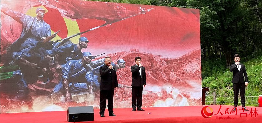 隨后,紀念演出在長白山老黑河遺址發現者陳文序演唱的歌曲《老黑河里的少年營》中拉開序幕。