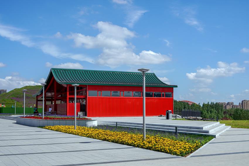 在長長高速南城市出入口,依托南溪濕地生態資源稟賦,“紅磚綠瓦”的“驛站”躍然眼前,中式古典風格與出城口建設相得益彰。