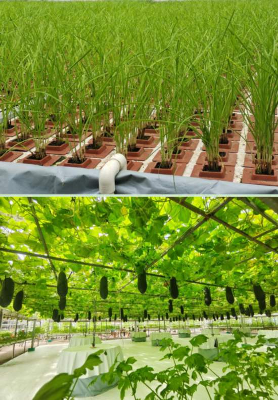高新無土栽培展示區重點展示推廣“之”字形管道、“回”字形管道、立體漏窗、垂直抱架等多種葉類菜立體栽培模式,茄果類、瓜類樹狀無土栽培技術,魚菜共生生態型無土栽培技術,三角及垂吊霧培技術等,實現無土栽培高新技術模式多元化,對現代農業種植具有引領示范作用。
