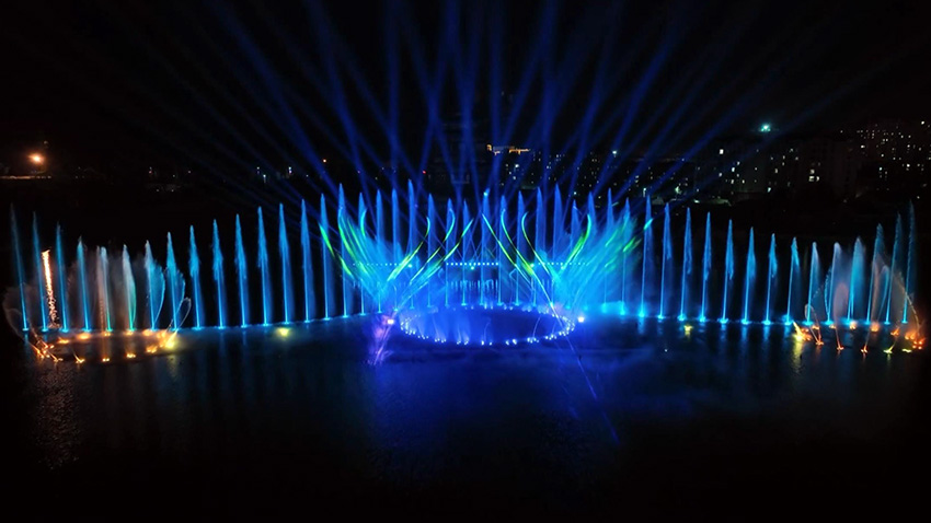 渤海湖公園燈光秀表演。(圖片由敦化市委宣傳部提供)