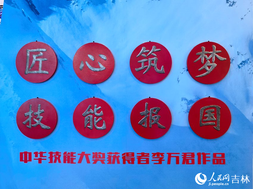 走進吉林展區,中華技能大獎獲得者李萬君使用氬弧焊焊接出的“匠心筑夢 技能報國”八個大字首先映入眼簾,走近細瞧,均勻細密的魚鱗紋讓人嘆為觀止。