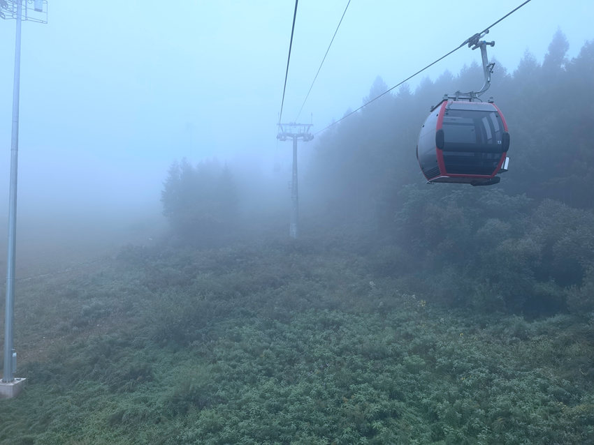 在通化萬峰滑雪旅游度假區,北京冬奧會同款纜車下有1700多米長的初級雪道,讓滑雪初學者也能享受滑雪運動帶來的樂趣;1959年建成的小回轉雪道和大回轉雪道,永久保留且仍在使用,霧氣朦朧,新中國第一座高山滑雪場的模樣仿佛浮現眼前。