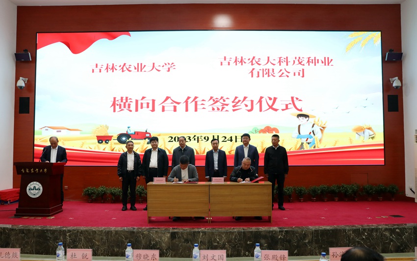 簽約儀式上,吉林云天化種業科技有限公司代表和農學院李繼竹副教授簽署了“吉農大2088”等4個玉米品種的轉讓協議。