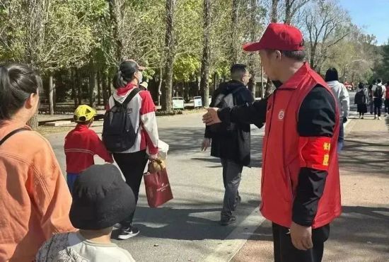 中秋節和國慶節期間,長春市退役軍人志愿服務隊的隊員們身穿“紅馬甲”,在長春凈月潭園區為游客指引路線、疏導車輛通行、解答游客問詢、宣傳文明知識、勸導文明旅游、督導森林防火、維護游覽秩序,他們用責任和擔當為游客提供了安全、放心的旅游環境,用堅守和奮斗勾勒出了凈月潭和諧、文明的旅游畫卷?!皟粼绿毒皡^從各個方面給予了我們退役軍人關愛和尊重,我們用實際行動守護景區安全,這是我們的雙向奔赴?!眳⒓又驹富顒拥睦媳鴤冋f。