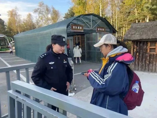 張薔,退役軍人,現任長白山公安局白河森林公安分局政治處四級警長。國慶期間,她在長白山池北區黃松浦游客集散中心守護景區游客安全。