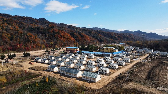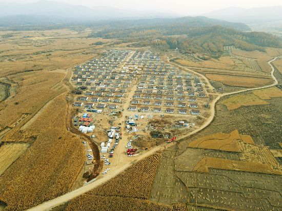 10月中旬,俯瞰吉林省舒蘭市開原鎮新開村異址重建項目