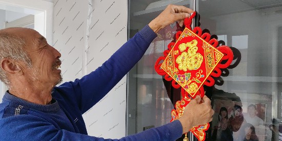 吉林省舒蘭市開原鎮模范村,村民皮亞洲在新建的家中布置裝飾