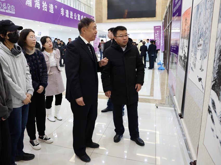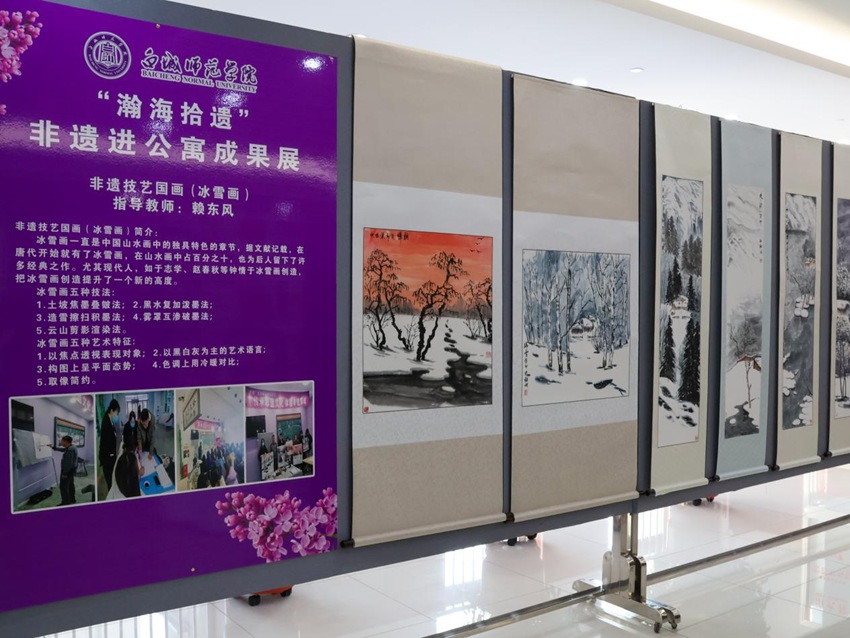 12月13日,白城師范學院在思敬樓二樓大廳舉辦了“瀚海拾遺”非遺進學生社區成果展活動。國畫、烙畫、書法、剪紙、快板書等非遺作品陳列有序,引得在場師生紛紛駐足向非遺傳承人虛心請教。