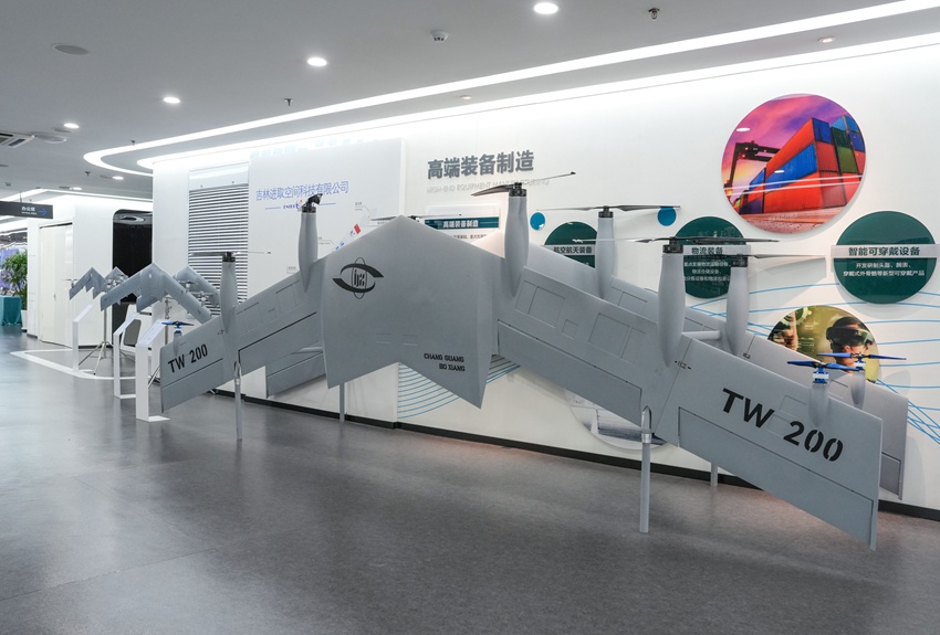 在第二十五屆中國國際高新技術成果交易會上,長春新區企業長春長光博翔無人機有限公司研發的國產全球首創的雙飛翼垂直起降固定翼無人機亮相,引起廣泛關注。