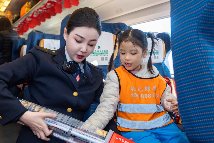 “沒想到,我剛在視頻中呼吁南方旅客來北方做客,就迎來了可愛的小砂糖橘們,我準備了特殊的小禮品,要送給他們?!?63萬粉絲的“影老板”劉影為小旅客們科普安全乘車常識、講解了廁所、電茶爐等設備設施使用方法,還準備了小火車和筆袋、橡皮、格尺等鐵路文創產品。別具心裁的設計,讓小旅客們愛不釋手。