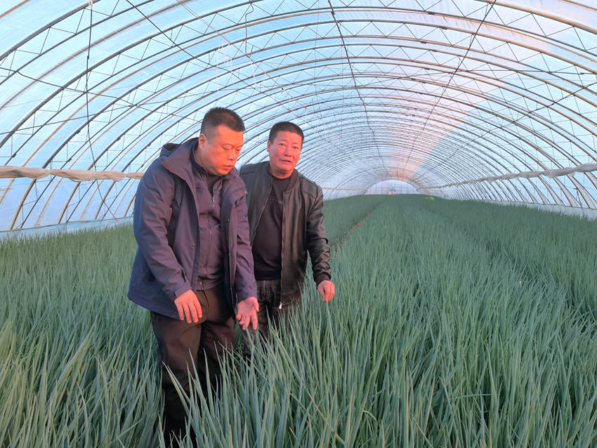 冬日室外雪花飄揚,香蔥棚內溫暖清香。公主嶺市三里堡子村的香蔥種植戶們正趕著收割2023年最后一茬香蔥。在吉林省政協駐三里堡子村第一書記張弢的指引下,記者走進一棟大棚,眼前綠油油的香蔥長勢喜人。