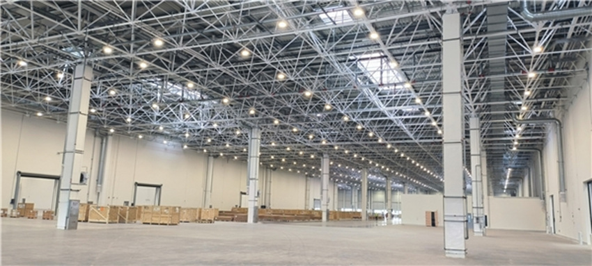 在長春市綠園區奧迪一汽新能源汽車項目高壓電池裝配車間、物流車間施工現場,通風空調系統等十余個機電系統運轉有序,兩個車間進入施工全面收尾階段。
