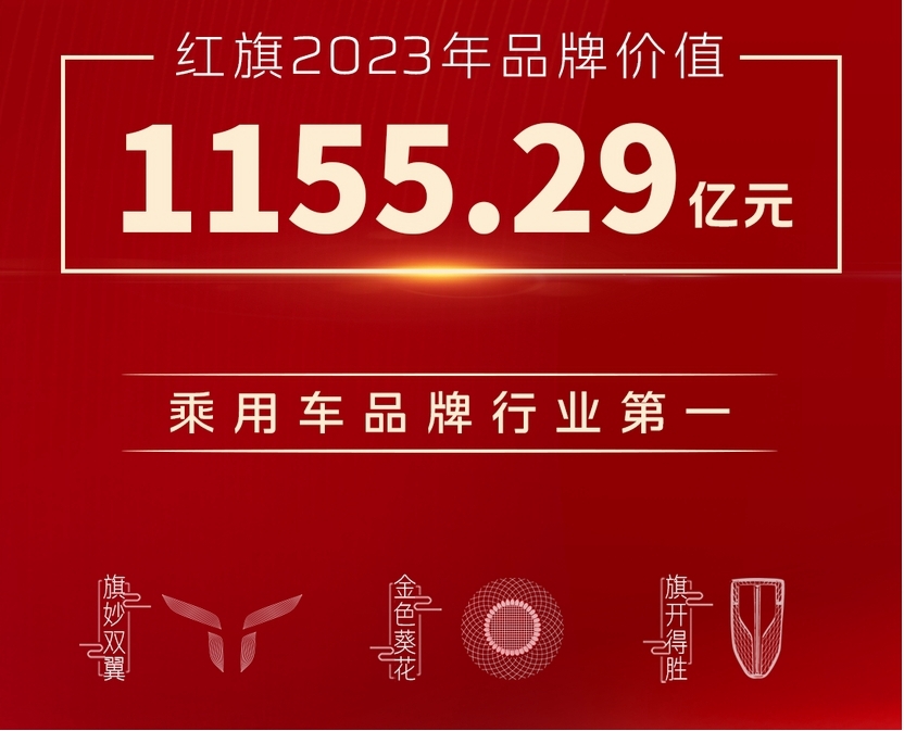 改革向新,踐行“初心”的“中式浪漫”彰顯了紅旗品牌底蘊,2023年紅旗品牌價值更是突破1155億元,位居中國乘用車品牌首位,行業影響力、美譽度再度提升。