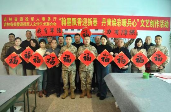 為喜迎新春佳節,1月18日,吉林省退役軍人事務廳、吉林省書法家協會、吉林省關愛退役軍人文學藝術聯合會共同走進駐長某部雷達站官兵中,開展主題為“翰墨飄香迎新春、丹青煥彩暖兵心”主題文藝創作活動。中國書法家協會、吉林省書法家協會的理事、會員和來自長春市柏合暖兵服務隊志愿者代表、長春市退役軍人代表等共計110余人參加活動。