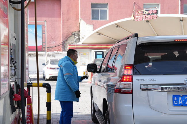 “忙碌”是近期普慶加油站的關鍵詞。檢查完日常的防火安全設備后,董晟君去加油機旁幫起了忙?!澳?,新年快樂!加幾號油?”一輛輛車開進來,董晟君熱情地迎了上去。指揮車輛停到合適位置,提起油槍,為車輛注入汽油,確認加油結束,拔出油槍,蓋好油箱蓋。