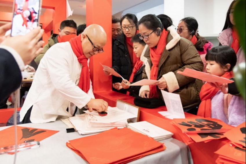 熏樣剪紙第五代非遺文化傳承人現場表演關東剪紙;偽滿皇宮博物院書法家現場講解甲骨文,潑墨寫字送福字,展示博物館拓片技藝……在偽滿皇宮博物院,濃濃的年味兒中展現著傳統文化的深厚底蘊。