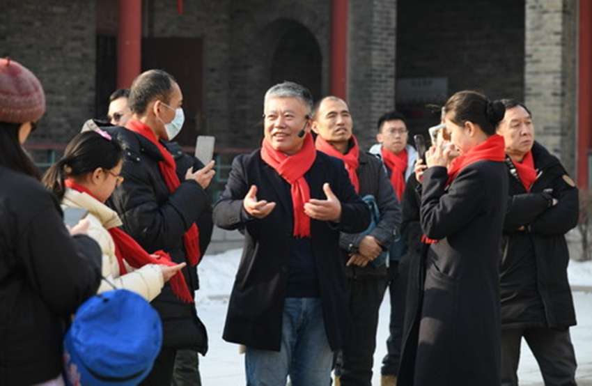 大年初四一大早,院長王志強迎接了廣東專寵團,帶著廣東游客游歷了緝熙樓、勤民樓、同德殿、跑馬場等景點,沿途許多游客也“路轉粉”,紛紛加入其中,聽院長講解博物館的知識,成功“蹭團”。