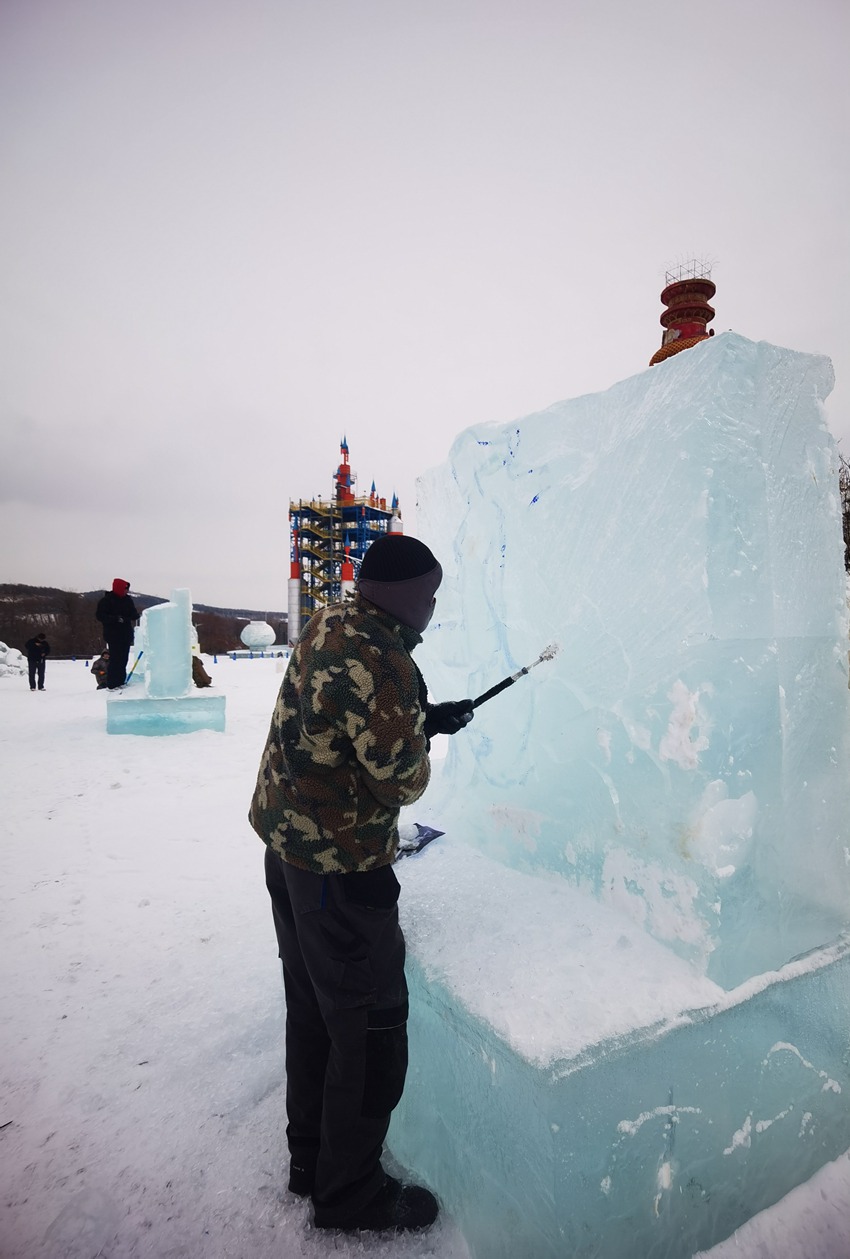 目前,長春冰雪新天地的采冰師傅拿起工具開啟新作品的雕刻。景區中,冰雕師傅雕刻的過程也成為一景,引來游客的圍觀。接下來,還將有各種冰雕陸續竣工,迎接省內外的游客,共賞冰雪。