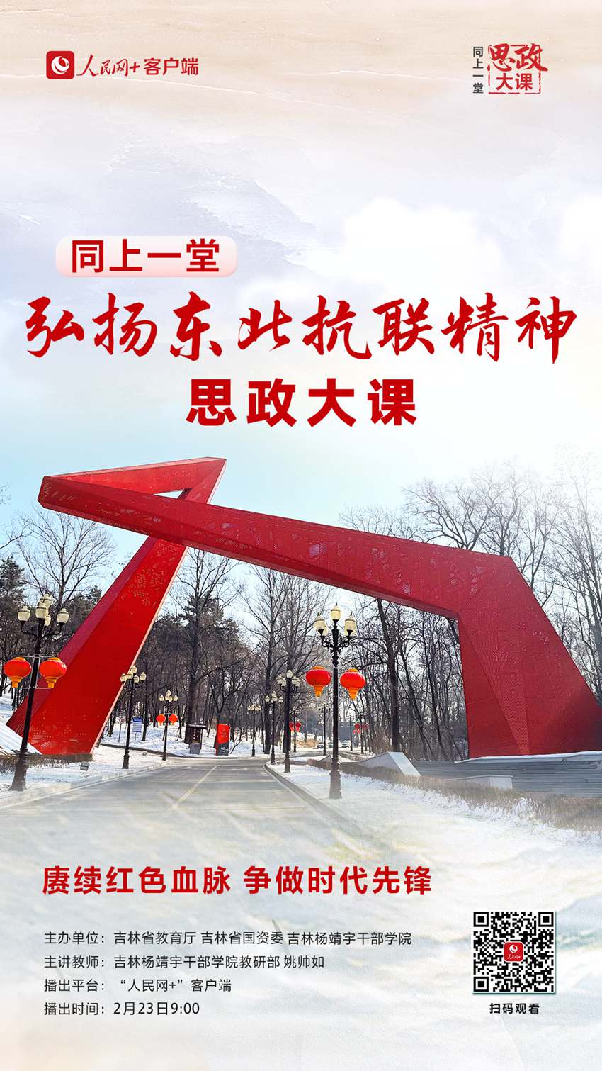人民網長春2月23日電 (記者李思玥)賡續紅色血脈,爭做時代先鋒。23日上午9時,“賡續紅色血脈 爭做時代先鋒”——弘揚東北抗聯精神同上一堂思政大課網絡學習活動在“人民網+”客戶端“云開講”。