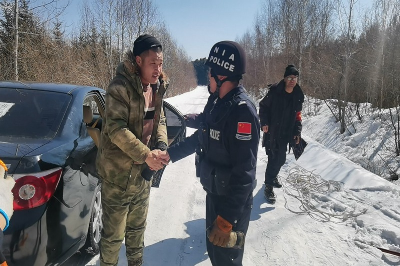 車主握住民警的手激動地說:“雖然這里的天氣讓我感到寒冷,但是咱們派出所民警的真情幫助讓我的心里倍感溫暖,真的謝謝你們!”