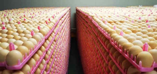 走進位于德惠經濟開發區的吉林德翔食品有限公司億羽孵化中心,一枚枚種蛋被安放在智能孵化柜中,柜中的溫度、濕度等即時動態信息在顯示屏上一目了然。不論種蛋周齡、大小,只需動動手指,孵化控制便自動完成。雞雛經過人工精選、免疫注射等多個環節,裝車運送至養戶家進行肉雞代養。