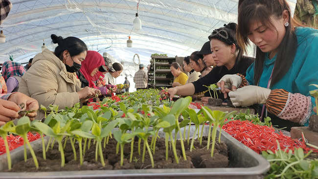 在德惠布海鎮加玉家庭農場香瓜溫室大棚內,一排排翠綠的瓜苗映入眼簾,一株株長勢喜人,幾十名工人在嫁接操作臺緊張地忙碌著,這些工作對于他們來說早已駕輕就熟,只見他們熟練地使用刀片輕輕一劃,再用夾子輕松地將香瓜幼苗嫁接在哈密瓜根上。