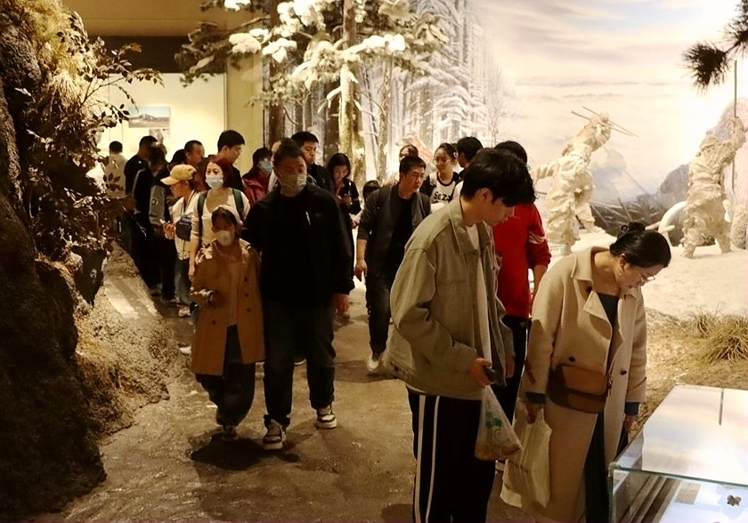 清明假期首日,吉林省博物院預約參觀火爆,當天接待觀眾14752人,迎來參觀高峰。4月4日線上預約名額爆滿,為滿足公眾的參觀需求,吉林省博物院啟動應急預案:現場游客可排隊進場,當場館達到可承受的參觀人數峰值后,待有游客出場,再次放行相應數量游客入場。白山松水的記憶、“龍”重登場等10余個展區開放。