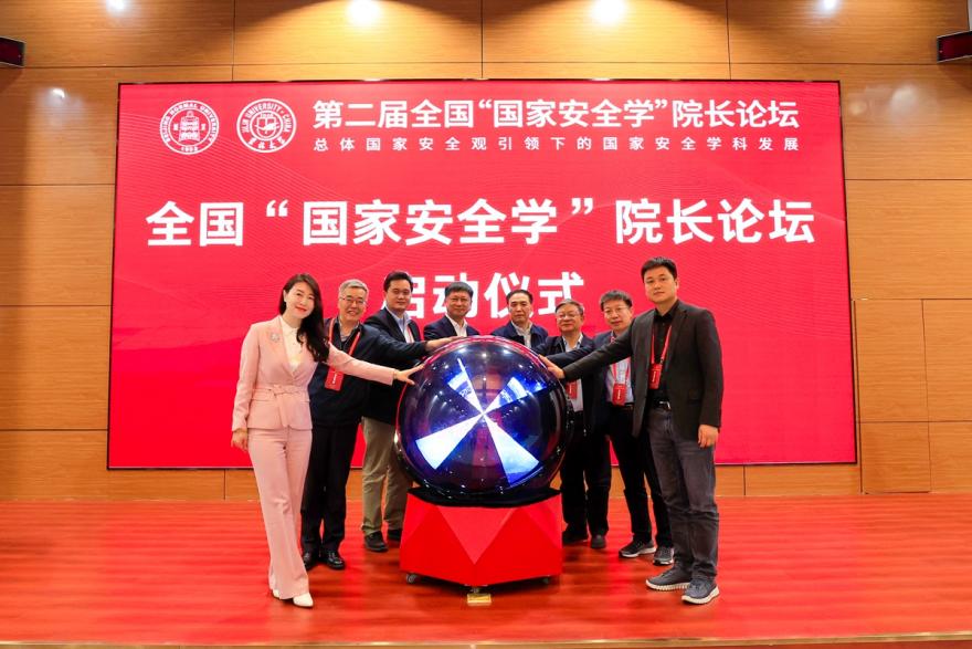 開幕式上舉行了全國“國家安全學”院長論壇啟動儀式。張希與國務院學位委員會學科評議組成員唐永勝、汪明、北京大學國際關系學院院長唐士其、復旦大學國際關系與公共事務學院院長蘇長和、南京大學政府管理學院副院長張海波,吉林大學公共外交學院、國家發展與安全研究院院長肖晞以及清華大學安全科學學院黨委書記申世飛共同按下啟動球,全國“國家安全學”院長論壇正式啟動。