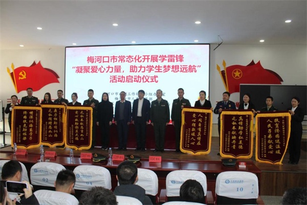 活動中,市人武部副部長于淼同志宣讀了《關于常態化開展學雷鋒“凝聚愛心力量、助力學生夢想遠航”活動的通知》,優秀學生代表上臺做了發言,受資助學生所在學校代表為駐梅各部隊贈送了錦旗。梅河新區退役軍人事務局局長王云同志對愛心助學工作作了詳細部署,同時號召全社會共同關心關愛祖國的未來,希望學生們珍惜來之不易的學習機會,志存高遠,自強不息,始終保持優異的成績和昂揚的斗志,為祖國的發展和家鄉的建設多做貢獻。
