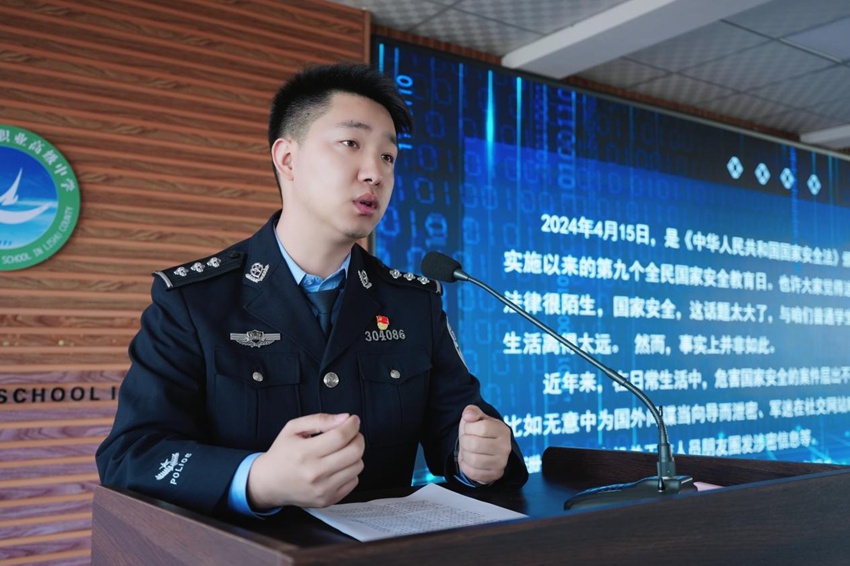 在梨樹縣職業高級中學,梨樹縣公安局特警大隊副大隊長劉柏林以專題講座的形式,詳細講解了國家安全的重要性以及學生們在日常生活中如何維護國家安全。通過一個個生動鮮活的案例講解,使學生們深刻領悟到維護國家安全的重要意義。