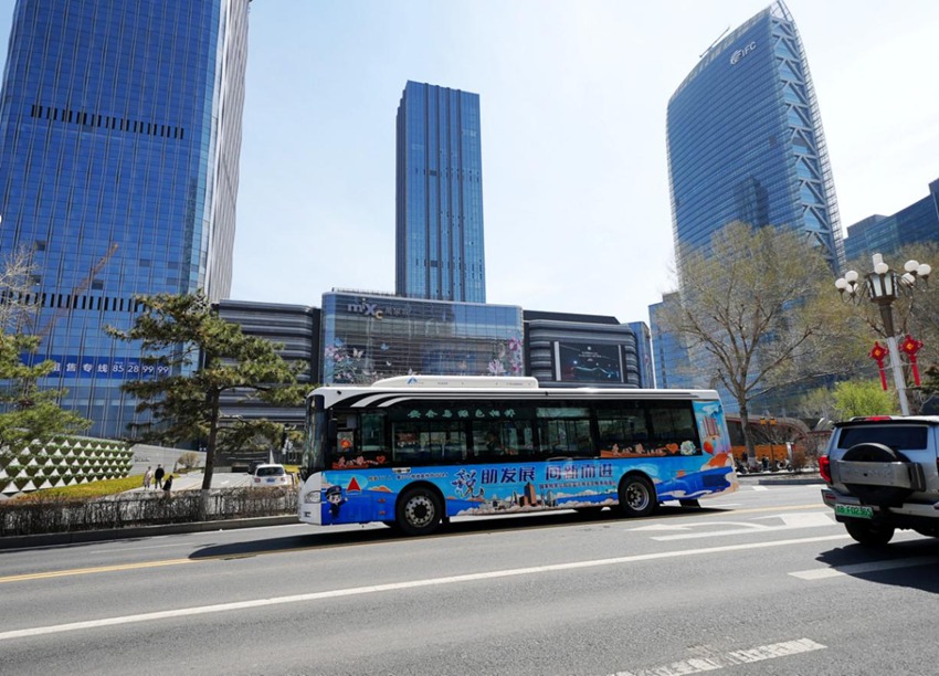 近日,在長春市區主干道人民大街上,一輛車身印有第33個全國稅收宣傳月“稅助發展 向新而進”主題語的306路公交車從市政府站出發運營,乘著稅惠春風為春城更添春色,吸引不少市民駐足拍照。