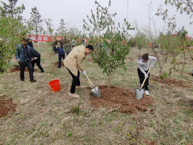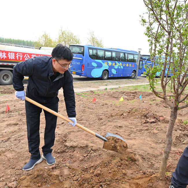 植樹現場,每名志愿者都精神抖擻、干勁十足,大家臉上洋溢著笑容,展現出不同的企盼與熱情,紛紛拿起鐵鍬走向植樹地點,扶正樹苗、揮鍬鏟土、圍堰澆水,分工協作、配合緊密,合力種下一棵棵新苗,呈現出一派熱火朝天的勞動場景。經過一番辛勤勞作,200余棵山杏樹苗扎根泥土、迎風挺立,在這片沃土上“安家落戶”,為春日的大地增添了新的生機與活力。綠色傳承,生生不息, 在未來的三年里,吉林銀行志愿者將繼續在這里深耕細作,不斷增厚吉林銀行公益林的家底,屆時將栽種苗木達到近千棵。