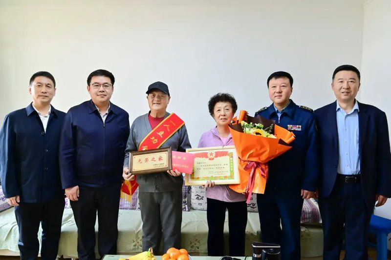 “您的孩子在部隊立功了,我們來給您送喜報啦!”近日,在現役軍人于曉海家中,長春市寬城區送喜報小組向軍屬祝賀,為立功軍人家屬佩戴綬帶、送上鮮花。立功軍人家屬臉上洋溢的幸福笑容。