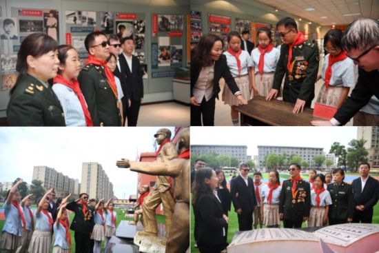 報告會后,報告團成員與雷鋒小學的學生們互動交流,并提前祝小朋友們兒童節快樂。王琦在學生代表的攙扶下來到雷鋒展室,聆聽了學校建校史和雷鋒生平事跡的有關介紹,鼓勵孩子們要學習雷鋒精神,傳承榜樣力量,從小立志愛國,努力成長為有知識、有品德、有作為的新一代建設者!