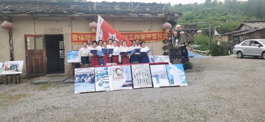 在開幕儀式上,相關領導及藝術家、非遺傳承人代表紛紛發言,并向工作室捐贈了他們帶來的有關長白山的老物件和長白山地域文化的書籍、文獻、書法作品等?!八山涌孤摬┪镳^和抗聯第一路軍第二歌唱團”齊聲高唱了《長白山抗戰歌謠》,歌聲久久地回蕩在古老的長白山上空。