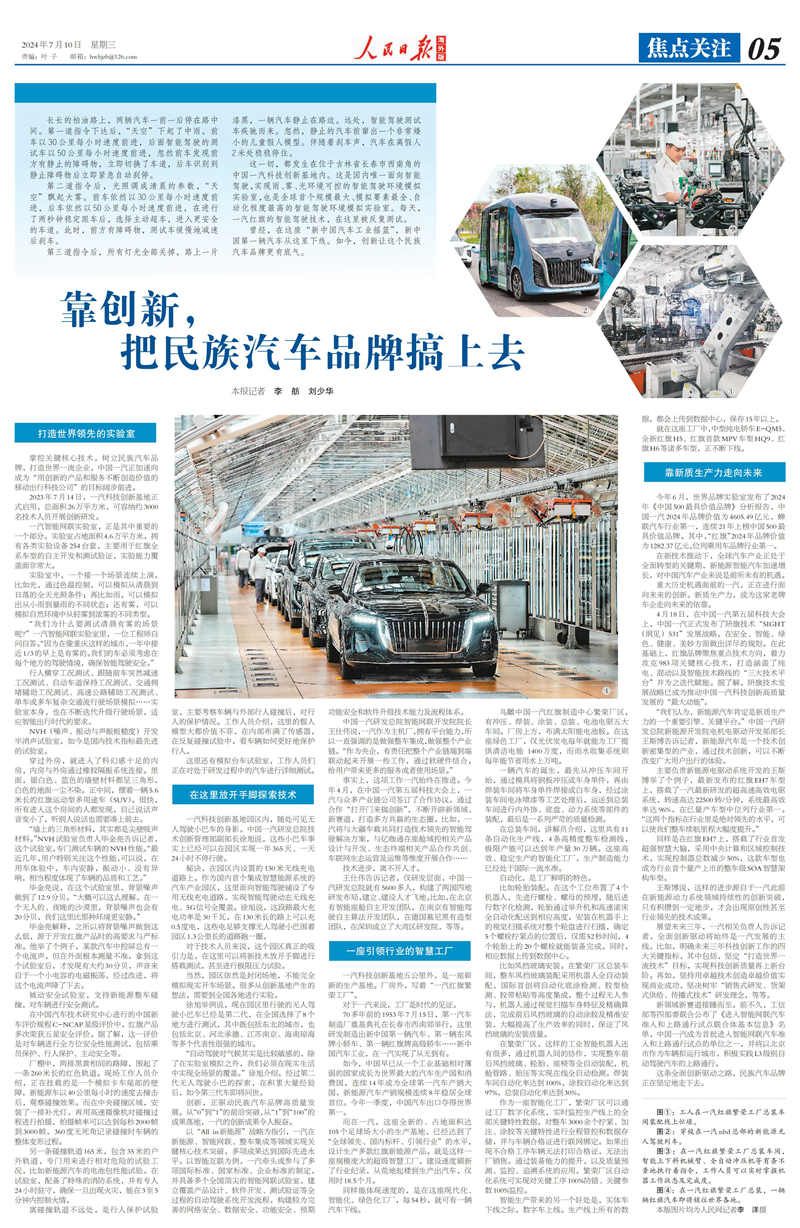 人民日報海外版整版聚焦吉林:靠創新,把民族汽車品牌搞上去